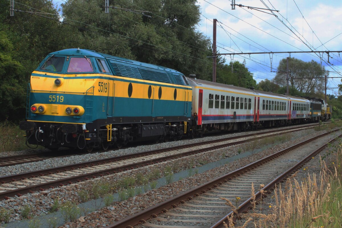 Am 29 Juni 2016 durchfahrt NMBS 5531 mit ein Gleisbauzug Antwerpen-berchem.