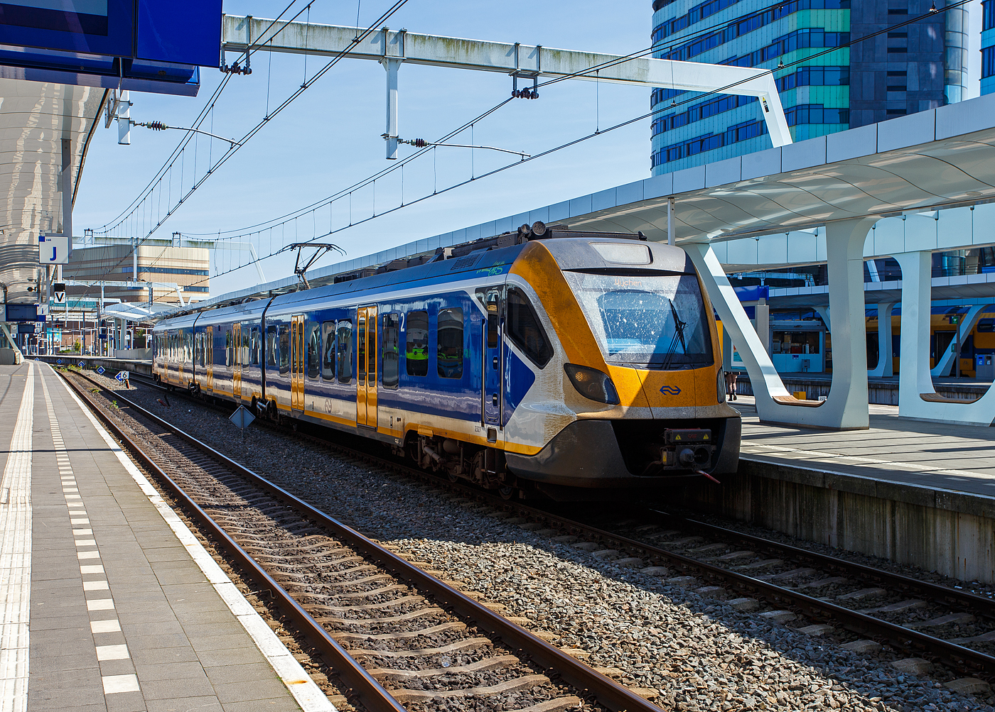 Der NS dreiteilige SNG 2327 (Sprinter Nieuwe Generatie), ein CAF Civity Triebzug steht am 29 April 2025 abfahrtbereit im Bahnhof Arnhem Centraal (Arnheim Hbf).