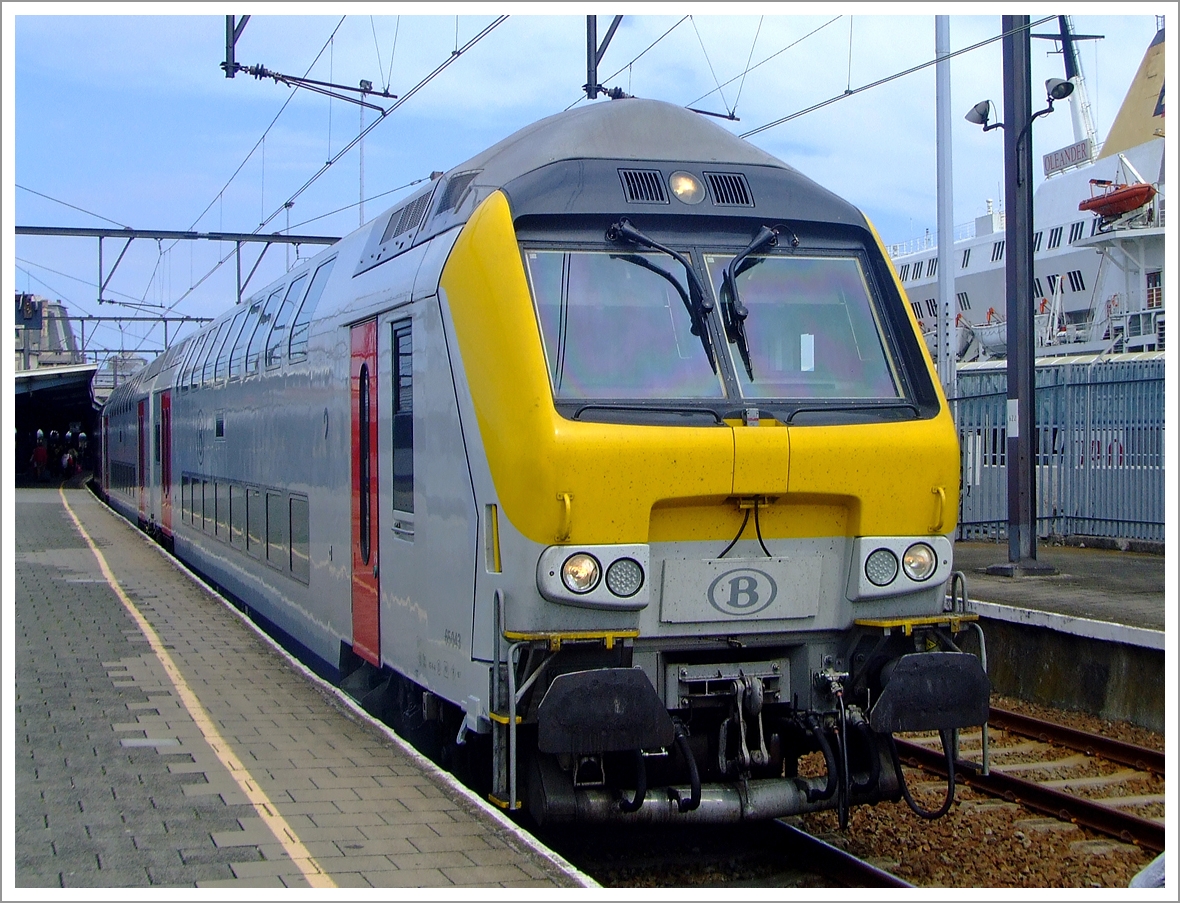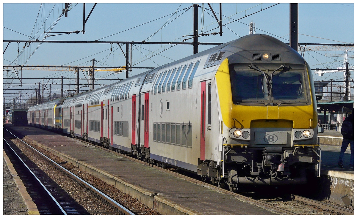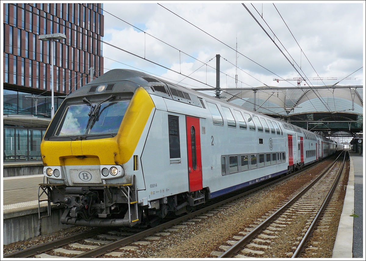 . Die HLE 2727 mit M 6 Wagen stand am 23.06.2010 in der schönen Halle des Bahnhofs Antwerpen Centraal. (Hans)