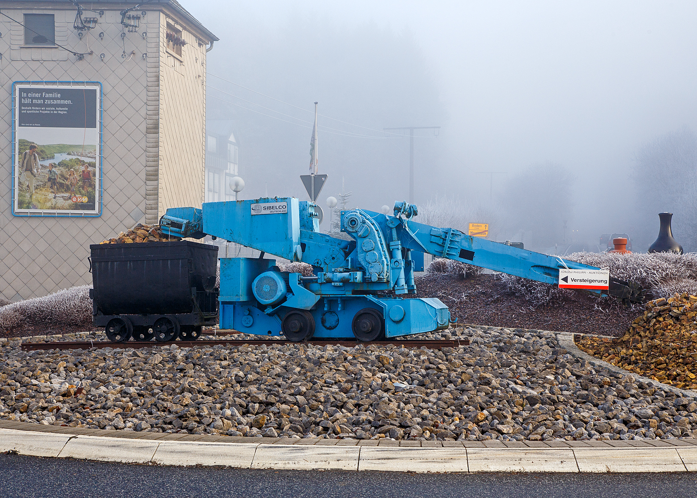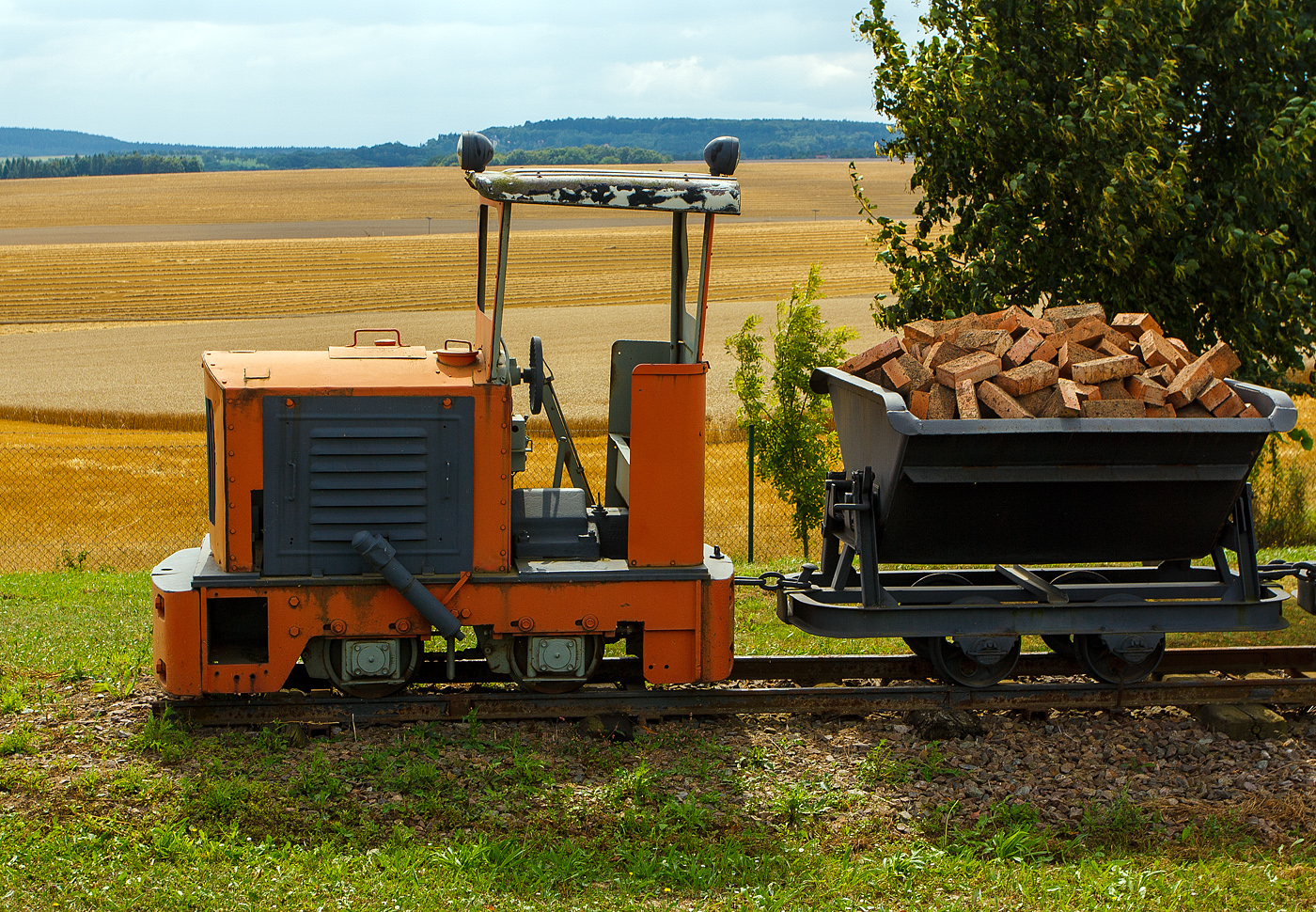 Eine 600 mm DIEMA Feldbahnlok mit einem Lorrenzug als Denkmal am 09 Januar.2021 bei dem Betriebshof der Westerwaldbahn (WEBA) auf der Bindweide bei Steinebach/Sieg. Der Typ und Baujahr sind mir unbekannt. Im Hintergrund die an die HERING Bahnbau (Burbach) vermietete 291 972-8 (98 80 3291 972-8 D-NRAIL) eine Sonderbauart MaK G 1600 BB der Northrail (Hamburg) und rechts angeschitten einige Plasser & Theurer Material-, Förder- und Siloeinheiten MFS 38 (teilweise BSW 2000 - Bunker-Schüttgut-Wagen genannt) der HERING Bahnbau, Burbach,