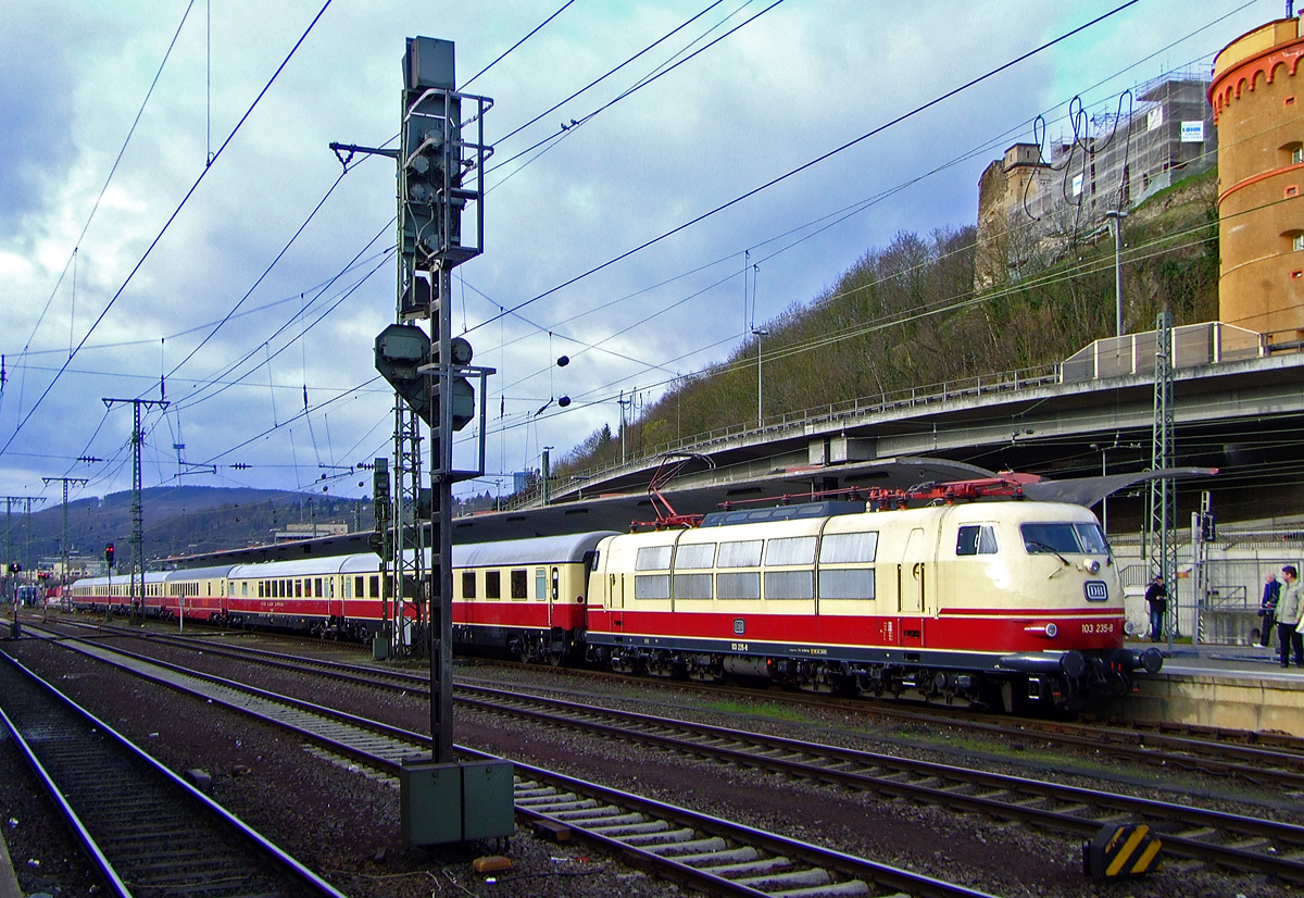 Die 101 060-2 (91 80 6101 060-2 D-DB) der DB Fernverkehr AG am 14.06.2013 im Hbf Koblenz. Damals noch mit Werbung „60 Jahre Bundespolizei“ . Wobei die Bundespolizei bis 2005 noch Bundesgrenzschutz (BGS) hieß.