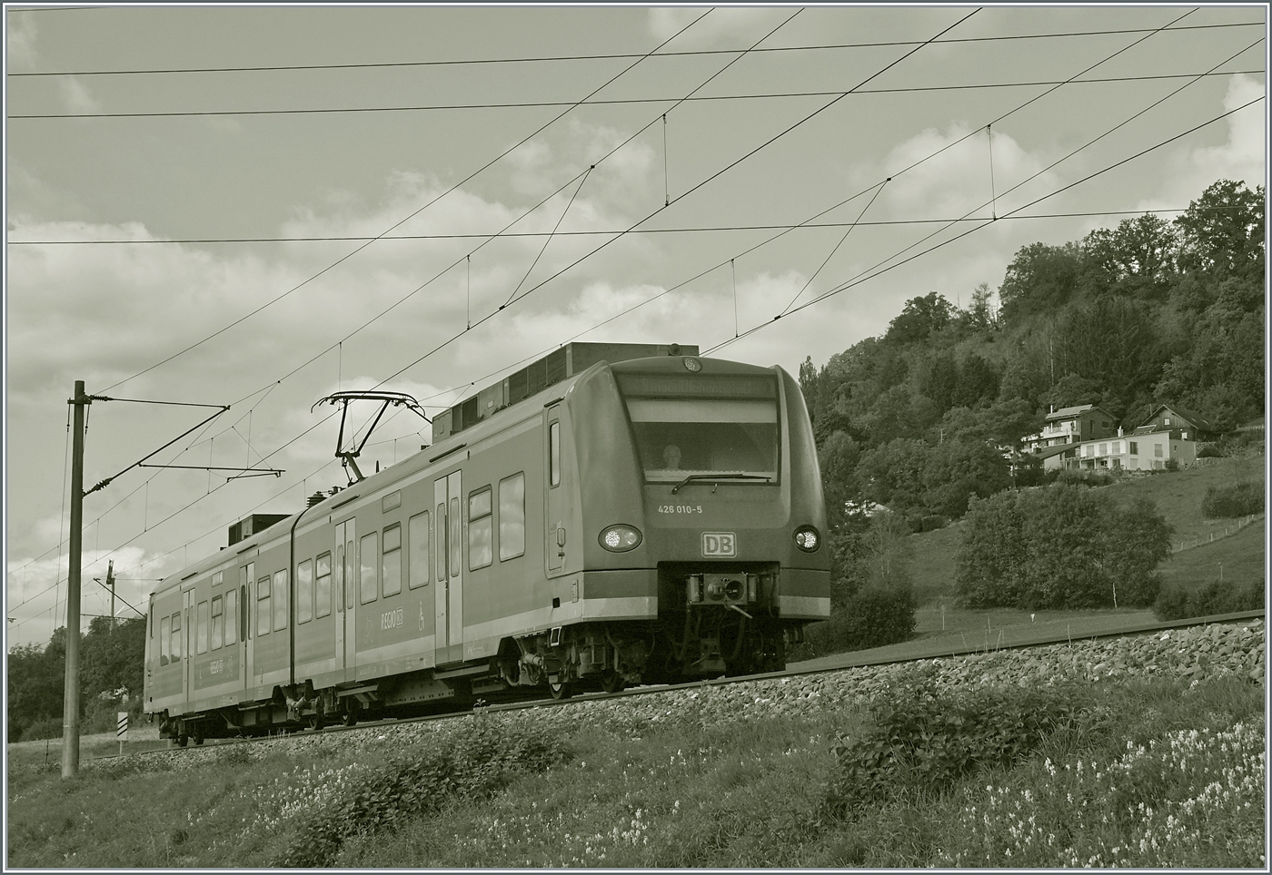 Ebenfalls eine Überraschung war die E 111 194 die mit ihren n-Wagen als "Radexpress" kurz nach Röt in Richtung Karlsruhe fuhr.