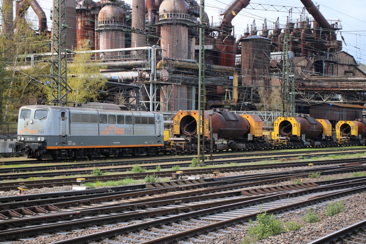 Die DB Cargo AG vermietete Railpool 151 099-9 (91 80 6151 099-9 D-Rpool), fährt am 20.03.2021 als Lz durch Rudersdorf (Kr. Siegen) über die Dillstrecke (KBS 445) in Richtung Kreuztal.