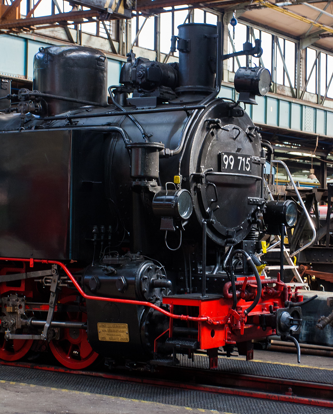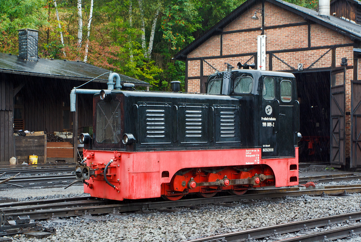 Die 99 1542-2 der Preßnitztalbahn. ex DR 99 1542-2, ex DR 99 542 und ex K.Sächs.Sts.E.B 135, steht am 25.08.2013 im Lokschuppen in Jöhstadt.