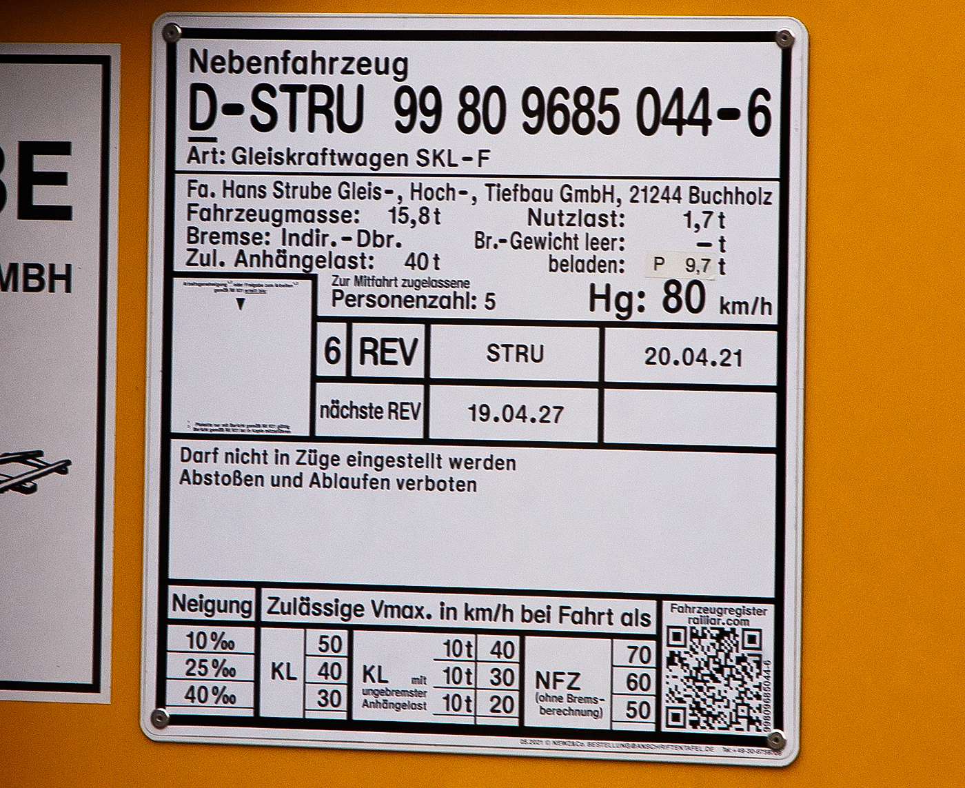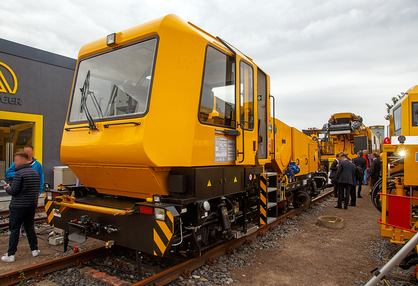 Hier der Technologieträger D-HOB 2500 IV (D-HOB 4.0), Schweres Nebenfahrzeug-Nr. D-SBAU 99 80 9427 020-9, mit dem eigentlichen Drehhobel. Die Fahrzeugtechnik wurde 2018 von der GBM Gleisbaumechanik Brandenburg/H. GmbH unter Fabriknummer 089 004 gebaut. Arbeitstechnik ist von der Firma Mevert Maschinenbau GmbH, Lauenhagen.