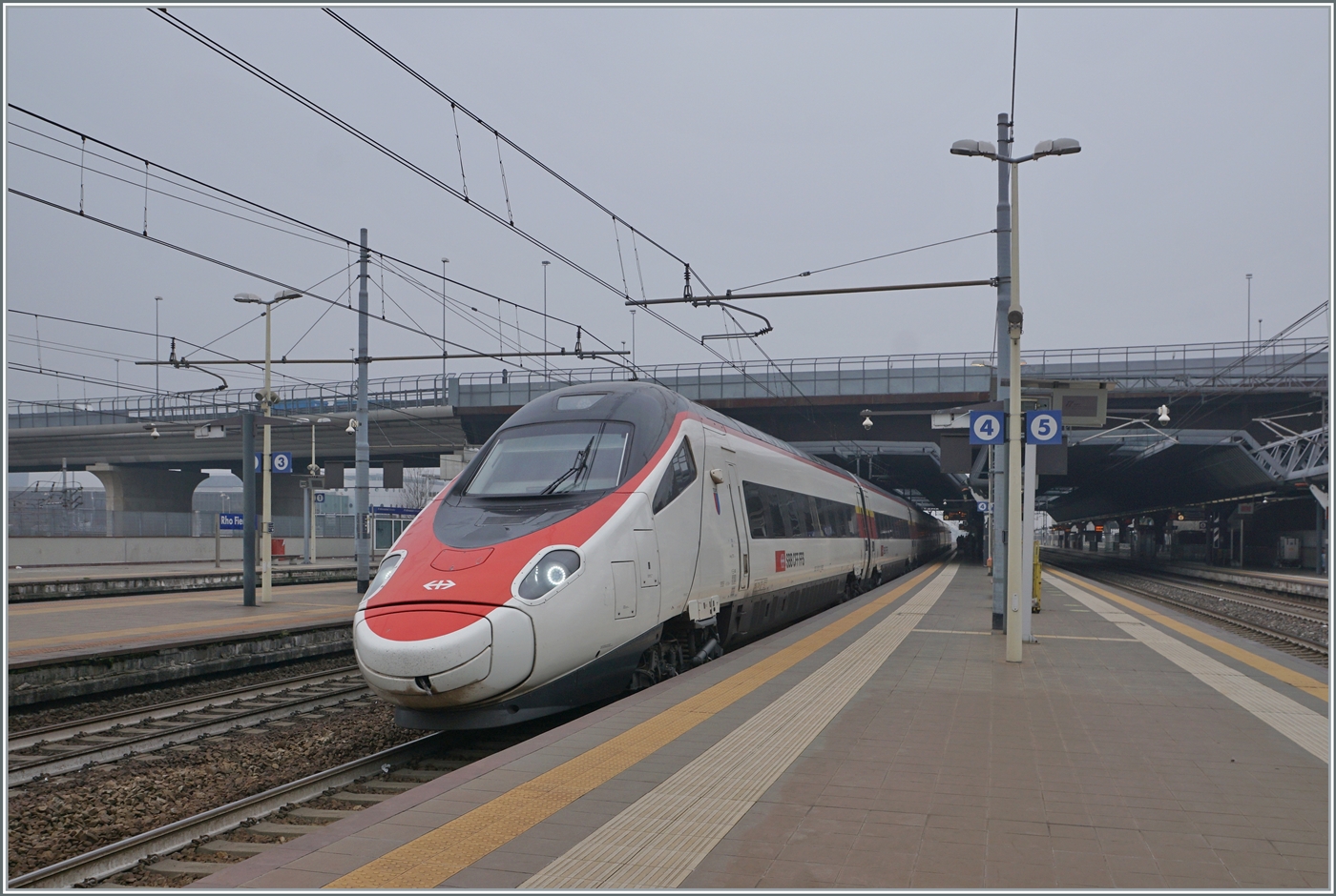 Infolge einer Messe hält der SBB RABe 503 EC 35 von Genève nach Venezia S.L. heute in Rho Fiera Milano und bietet mir einen guten Anschluss in Richtung Torino ohne "Umweg" über Milano Centrale. 24. Feb. 2023