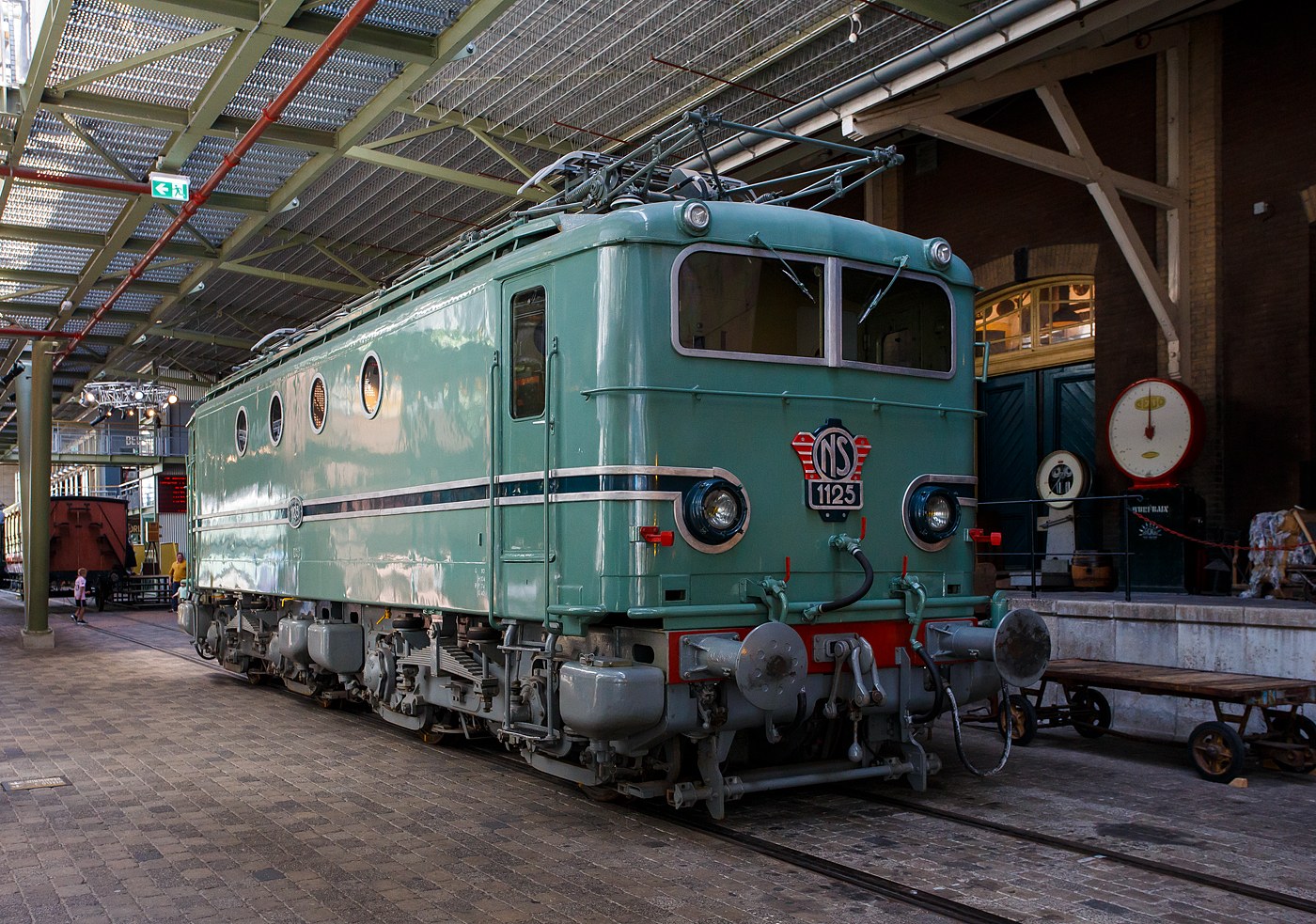 Die Elektrolokomotive NS 1125 der NS-Baureihe 1100 am 29 April 2025 im Het Spoorwegmuseum (bis 2005 NSM - Nederlands Spoorwegmuseum / Niederländischen Eisenbahnmuseum) in Utrecht im ehemaligen Bahnhof Maliebaanstation. Ein Eisenbahnmuseum das zum Verweilen einlädt, leider fehlte uns dieses Mal die Zeit dafür.