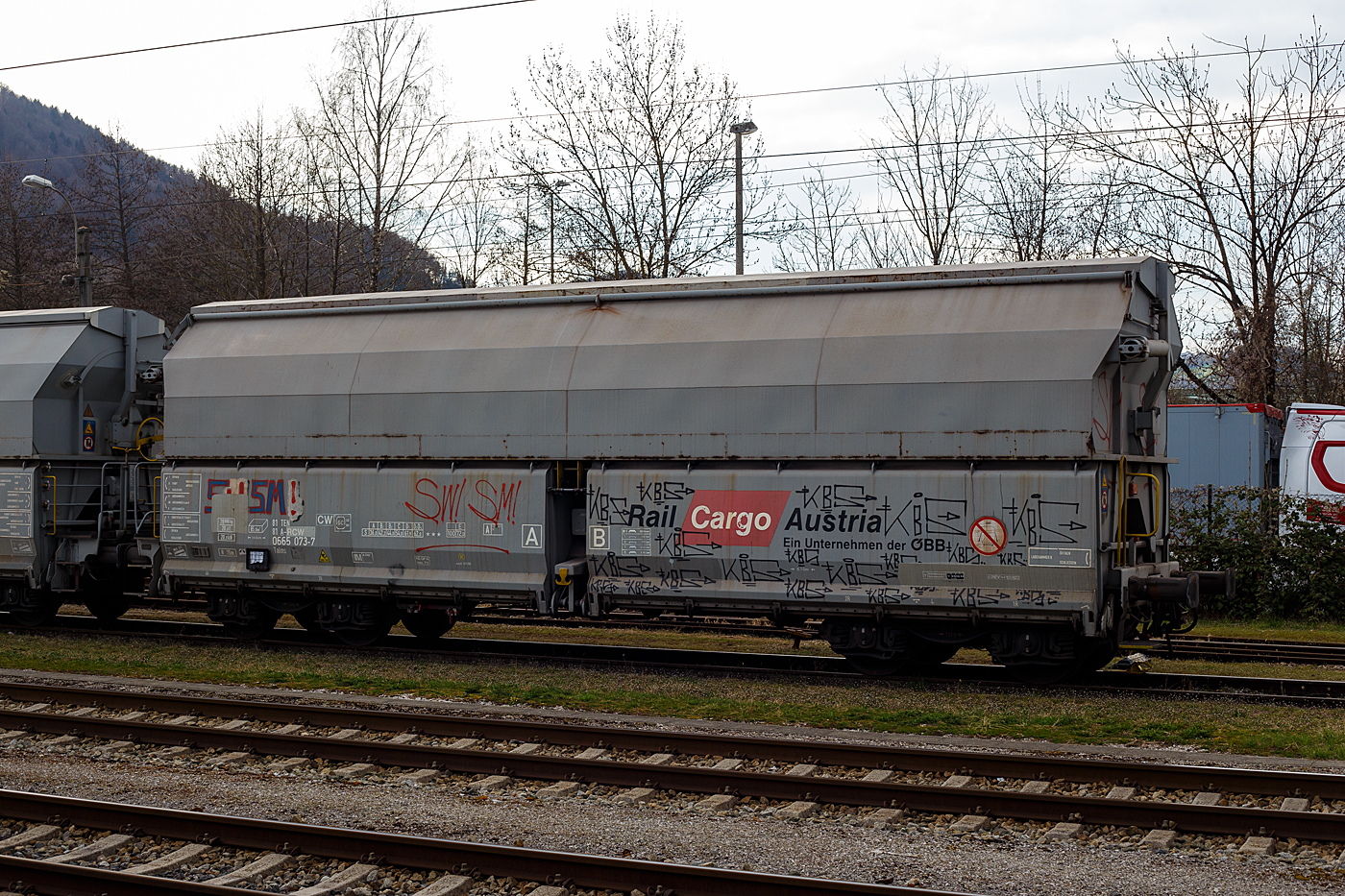 Der mit einer hohen bilateral kontrollierten Schwerkraftentladung und einem zu öffnenden Dach ausgestattete Wagen ist für den Transport von Kalksteinen und anderen Schüttgütern, die vor Witterungseinflüssen geschützt werden müssen, konzipiert worden. Das Schüttgut wird mit Hilfe der Schwerkraft über die Dachöffnung eingefüllt. Das kontrollierte Entladen wird manuell durchgeführt. Die Entleereinrichtung besteht aus 4 Auslauftrichtern die mit je 2 Klappen verschlossen sind und manuell per Hebel, einzeln von den beiden Plattformen an den Wagenenden aus betätigt werden. Die Komplette Entladung des Wagens ist durch Öffnung auf nur einer Seite möglich. Die Entladung des Wagens erfolgt auf Förderbändern oder in unterirdische Bunker.