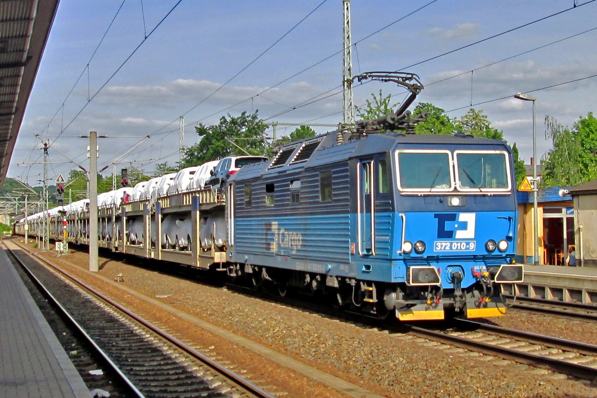 "I feel blue" denkt CD 372 012 mit blauer LKW Walterzug in Pirna am 11 April 2014. Und der Himmel ist damit einverstanden...