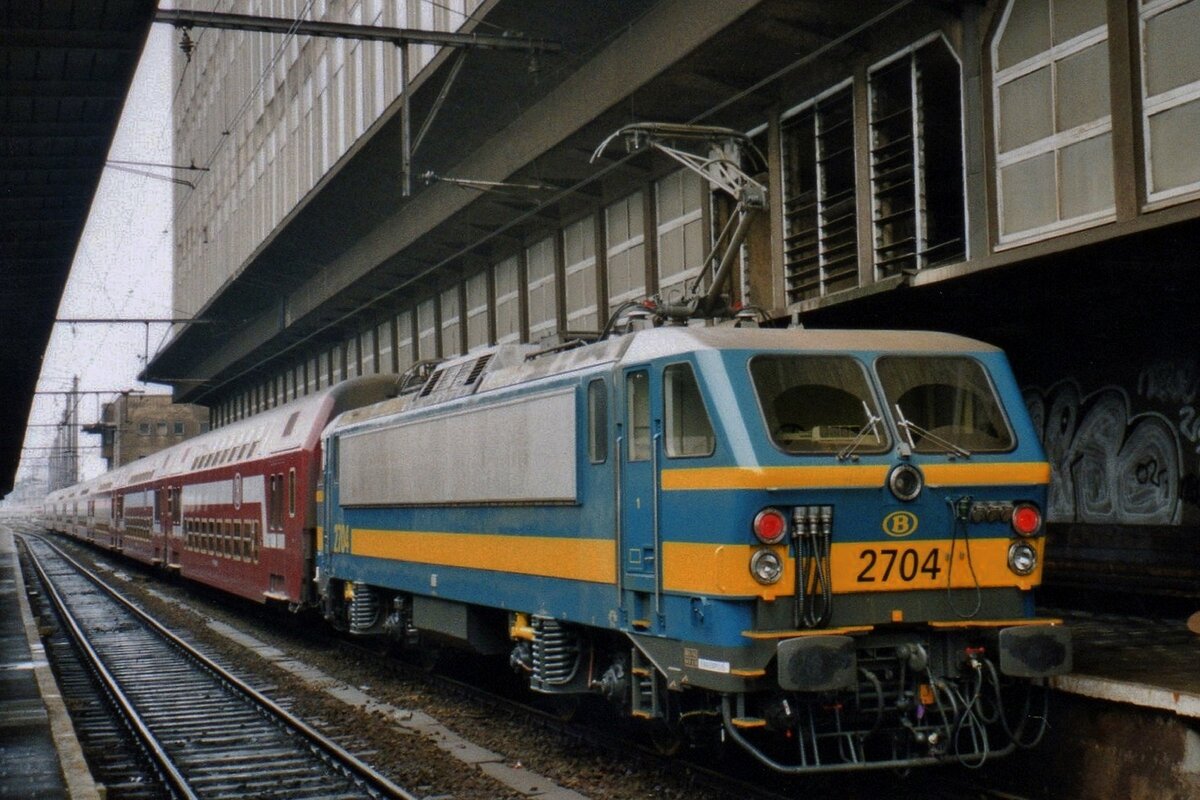 Am 17 September 2004 steht NMBS 2704 mit ein Spitzverkehrszug in Bruxelles-Midi.