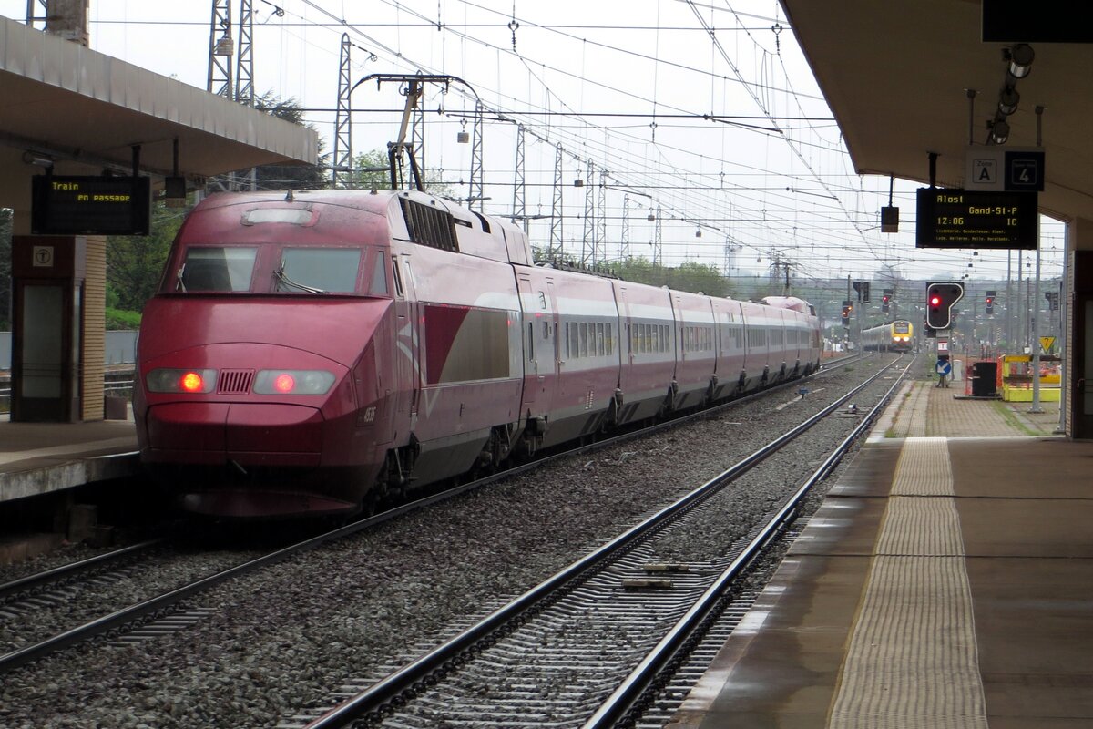 Thalys 4343 durchfahrt ohne Halt am 7 Mai 2023 Brussel Noord nach Essen Hbf über Lüttich, Aachen und Köln.