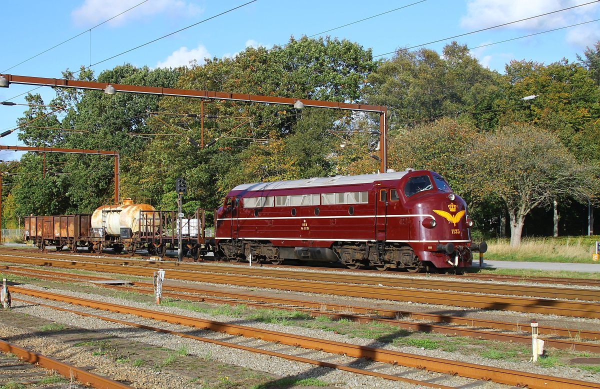 Die neue DSB Museumslok MY 1135 rangiert die sonst im Pattburger Güterschuppen hinterstellten DSB Güterwagen, Pattburg 9.10.2022