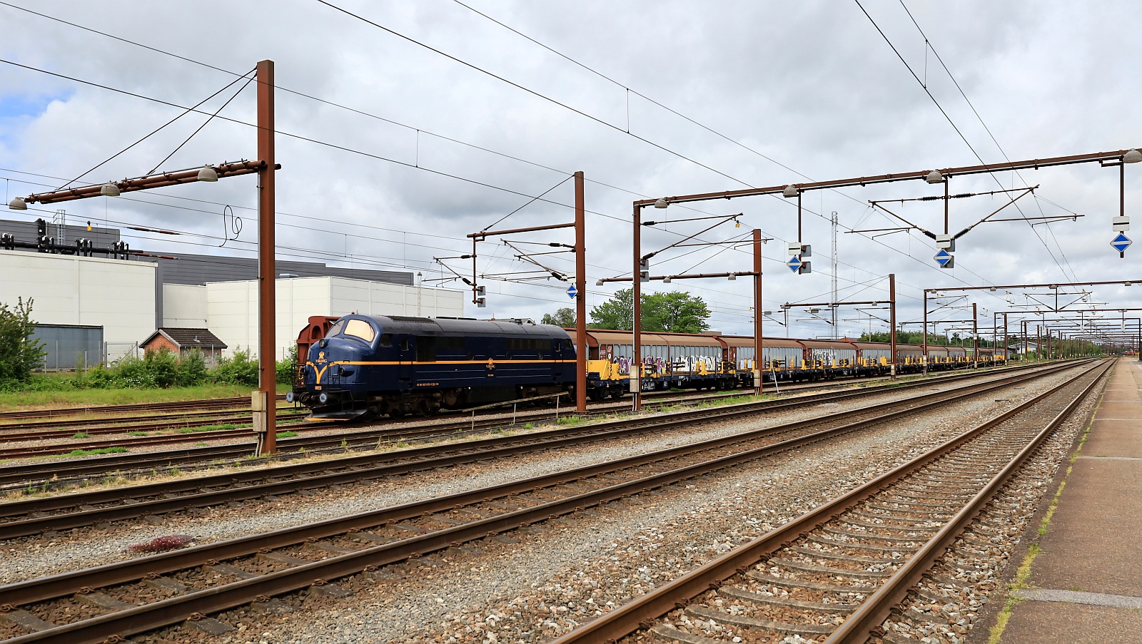 Die ehemalige DSB MX 1023 ist seit ihrer Übernahme durch die VIKINGRail blau lackiert. Sie verbringt das Wochenende in Pattburg 05.04.2025.