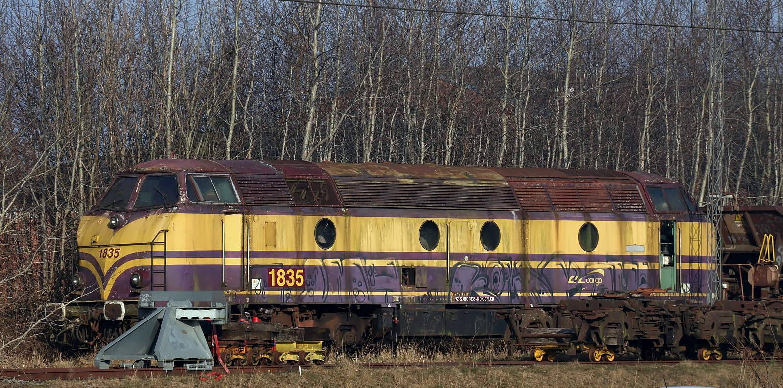 CFLCD Litra MX 1029 und 1831 mit Schiebewandwagenzug gen Pattburg aufgenommen bei der Durchfahrt in Tingelv. 08.08.2022