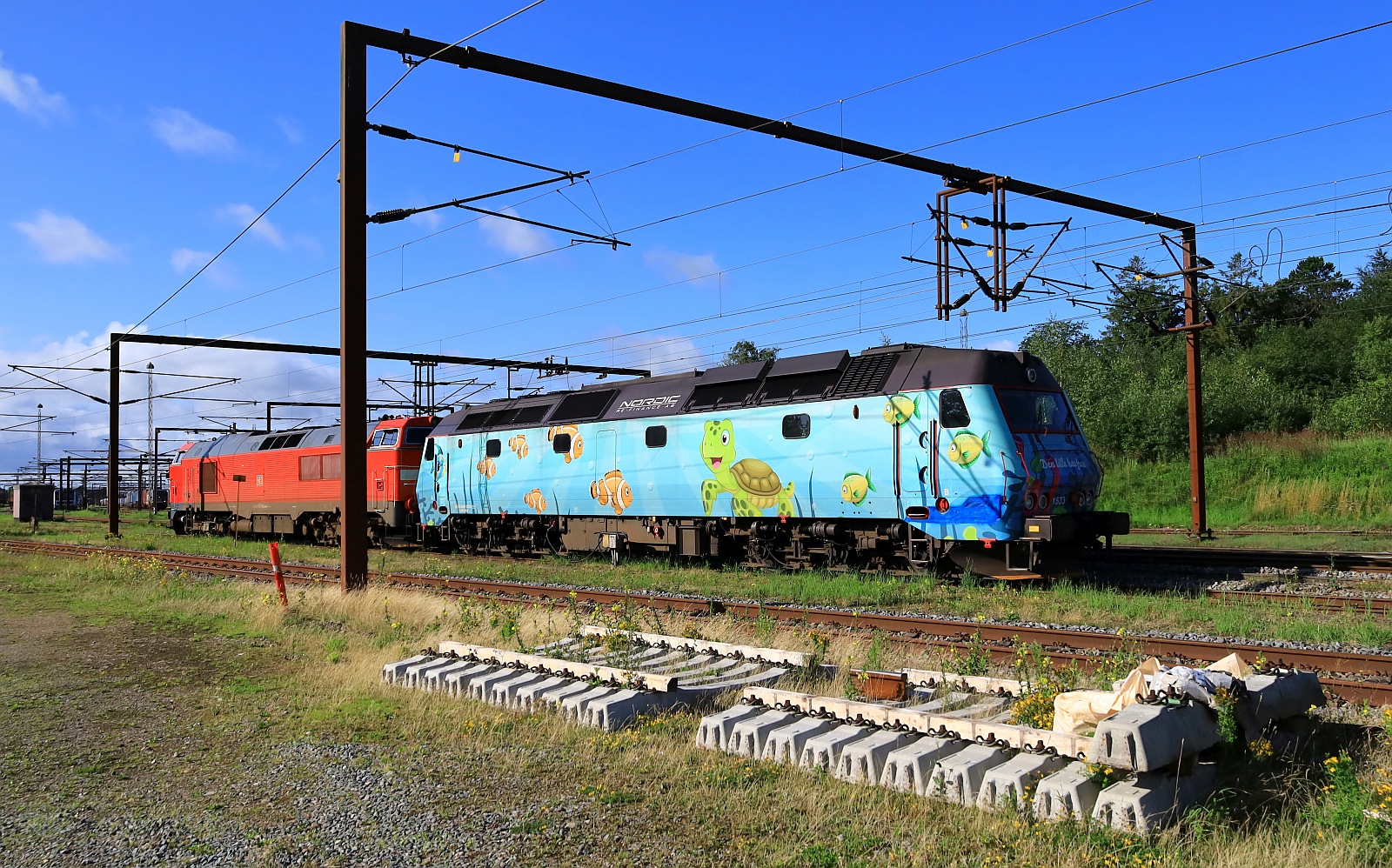 DBCSC Litra MZ 1453 (92 86 010 1453-5 DK-DBCSC) und die NRFAB TMe 1533 (92 86 0001 533-5 S-NRFAB) abgestellt im nörlichen Bw Bereich in Pattburg 22.07.2023