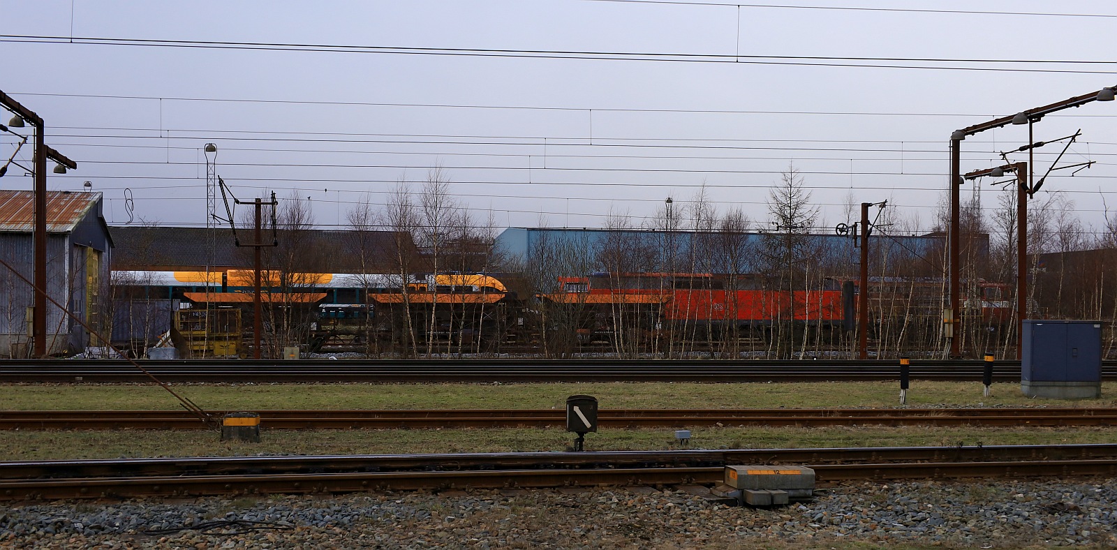 Leider nicht anders zu erreichen....die ODEG ist wieder mal Gast in Pattburg mit 2 GTW Triebwagen, DBCSC MZ 1449 dahinter eine von Viking Rail übernommenen ex CFL Diesellok die zwar blau lackiert wurde aber anscheinend ein neues Dach bekommen hat und die "Reste" der schon seit Jahren auf Revision wartenden CFLDE 02, 98 80 0261 021-6 stehen im hinteren Bereich der Viking Rail Werkstatt. Pattburg 21.01.2024