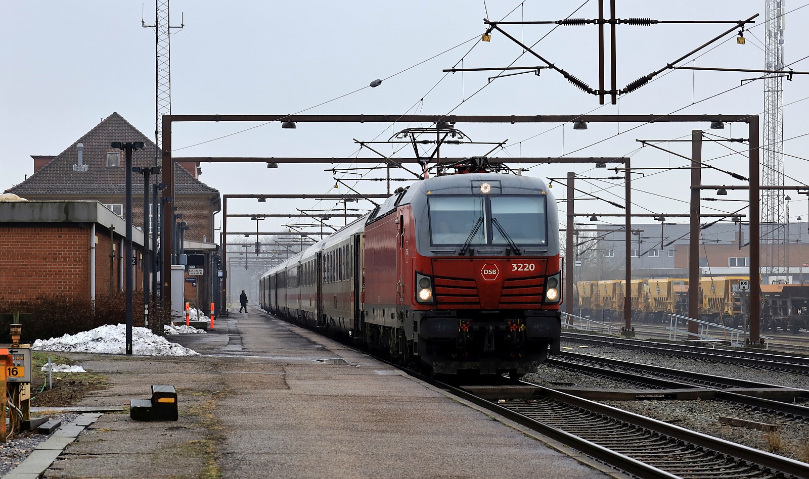 DSB Litra EB 3220 mit ECE 398 Ausfahrt Padborg/DK gen Kopenhagen. 25.02.2026