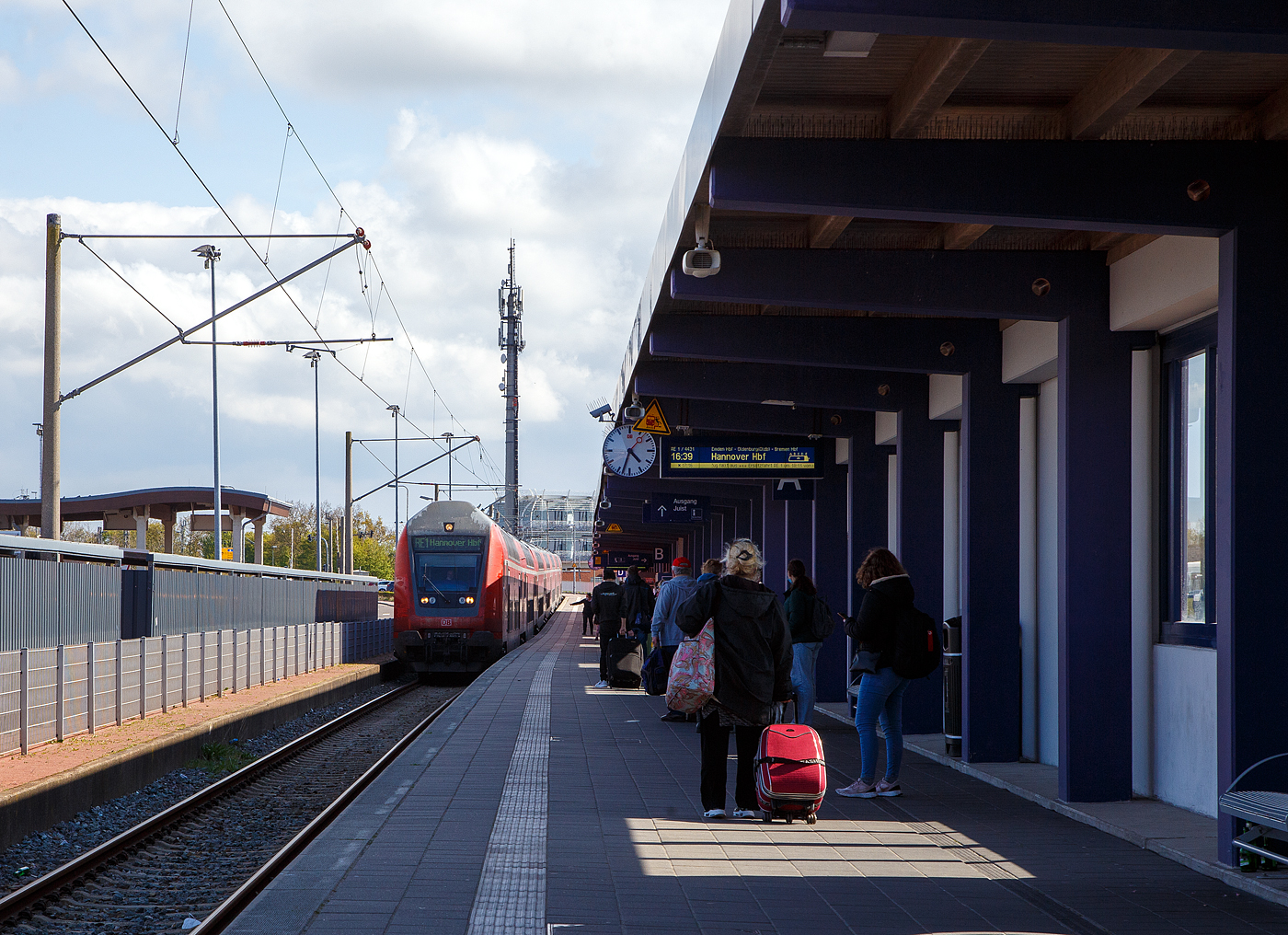 Die letzten Meter Gleis der Bahnstrecke Rheine–Norddeich Mole (KBS 395) und der Prellbock im Bahnhof Norddeich Mole, hier 14 Februar 2024. Hinten das Fährterminal der Reederei Norden-Frisia, für die Fähren nach den Nordseeinseln Juist und Norderney. Mit der Bahn kann man auch Fahrkarten bis Norderney durchbuchen, so geht man dann vom Bahnhof auf die Fähre.