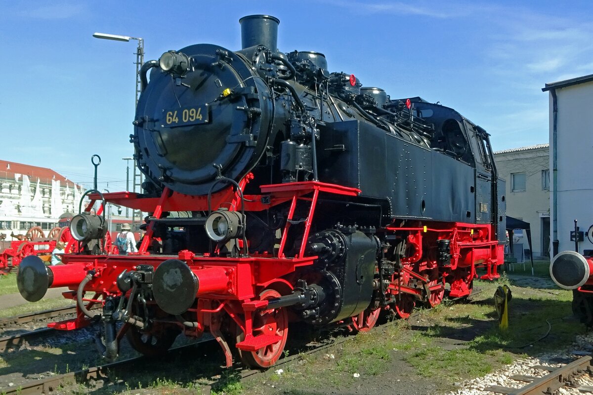 Am 1 Juni 2019 steht Bubikopf 64 094 ins Bayerisches Eisenbahnmuseum in Nördlingen während die renovation von der Bahnhof Nördlingen angefangen hat.