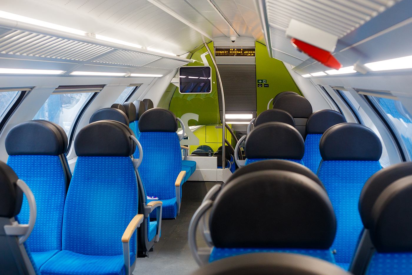 Innenraum im Oberdeck des sechsteiligen Doppelstocktriebwagen Stadler KISS (160) - ET 610 (94 80 0445 010-2 D-WFB ff.) der WestfalenBahn.