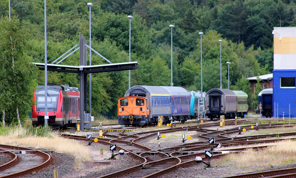 Blick auf das Bw Husum und auf den BTE Zug auf dessen Abfahrt gewartet wird...Husum 02.08.2017