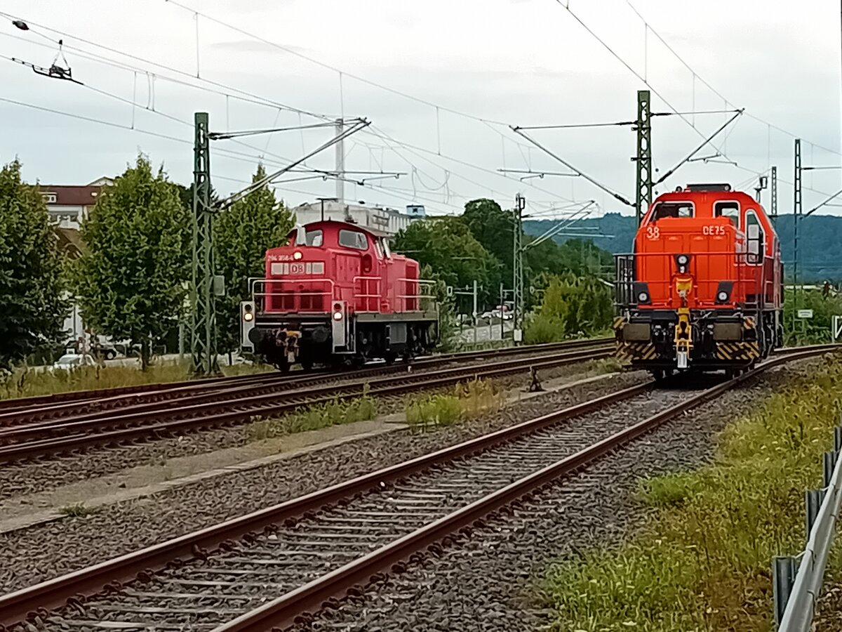 294 858-6 und die neu DE75 für ACELOR gebaute Werkslok on Mosbach am Gmeinderzufahrtsgleis am 29.9.2023
