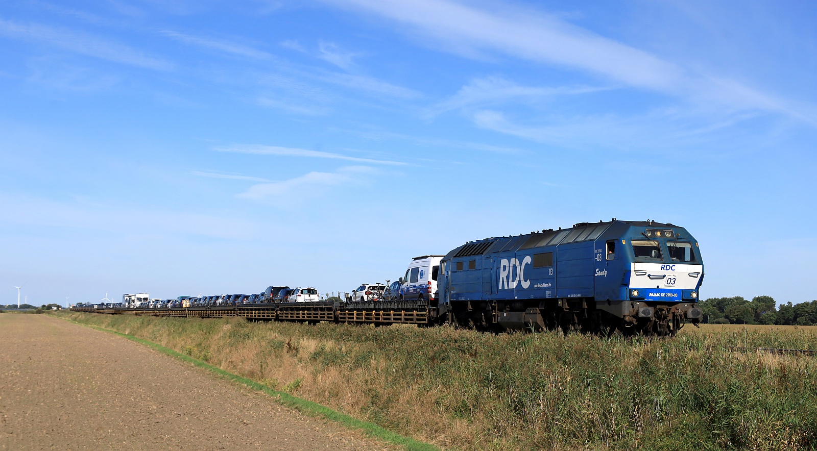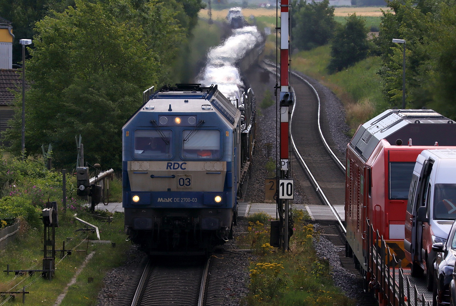 MaK DE2700-10 oder 251 010 als Schublok einer NOB Richtung Niebüll. Bü Lehnshallig 25.07.2015
