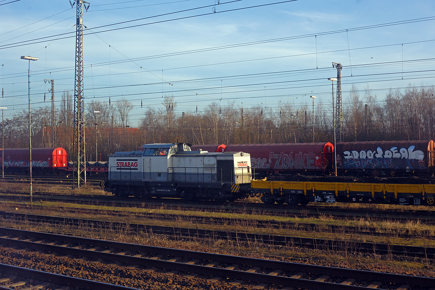 EVB: Eine V 1701 von EVB Logistik nach getaner Arbeit auf ihrer Rückfahrt in Schwandorf am Abend des 20. November 2014.