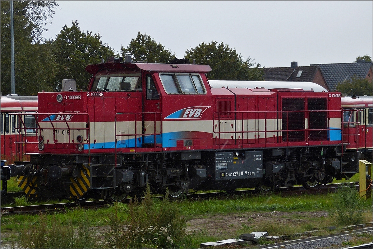 Vossloh G 1000 BB Diesellok; 92 80 1271 019-2 D EVB; Bj 2005; Bau Nr. 5001565;Bauart B‘B‘-dh; Spurweite 1435 mm; aufgenommen in der Abstellung von Bremervörde vom Bahnsteig aus. 17.09.2019