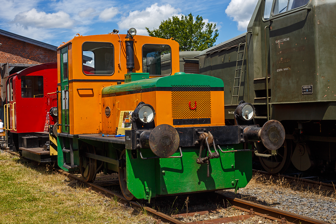 Die ex DB 323 842-5, ex DB Köf 6772, der Westerwälder Eisenbahnfreunde 44 508 e. V., ausgestellt am 07 Juli 2024 beim Erlebnisbahnhof Westerwald in Westerburger der Westerwälder Eisenbahnfreunde 44 508 e. V., hier war Lokschuppenfest.