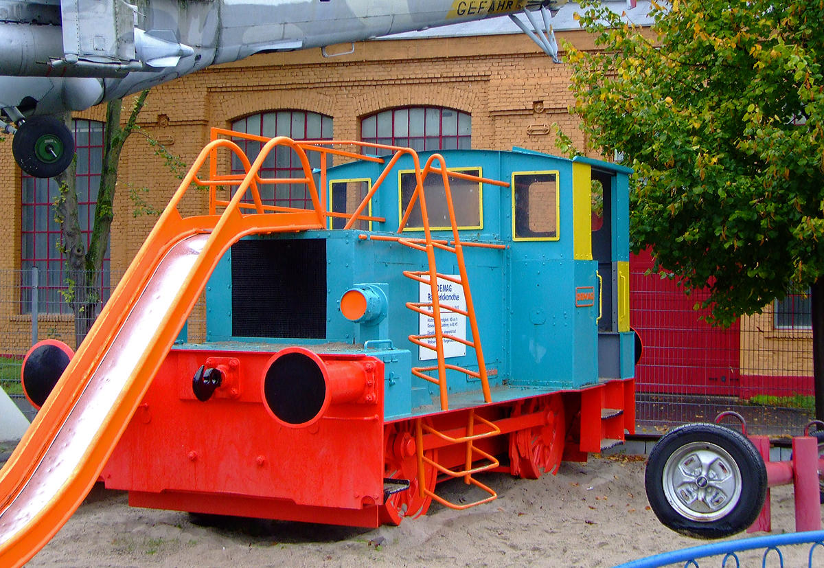 Die ehemalige Lok 3 der ZuS - Zuschlagstoffe und Spezialsande GmbH (Haida), ex Lok 4 der CFK – VEB Chemiefaserkombinat Wilhelm-Pieck-Stadt Guben, eine LKM V 22 B (ex LKM V 18 B) am 02.10.2010 im Technik Museum Speyer.