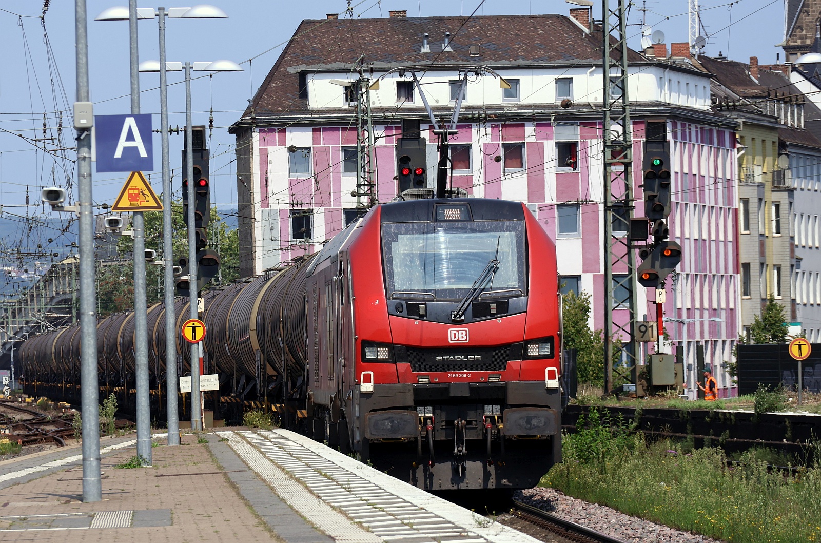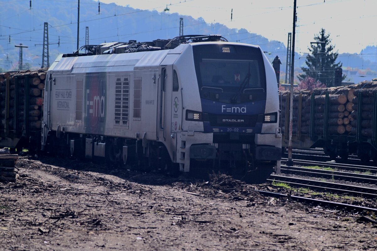 ELP/hvle 159 272 vor Düngerzug in Flensburg-Weiche. wegen starken Gegenlichtes mit Frontschatten, 25.09.2025.