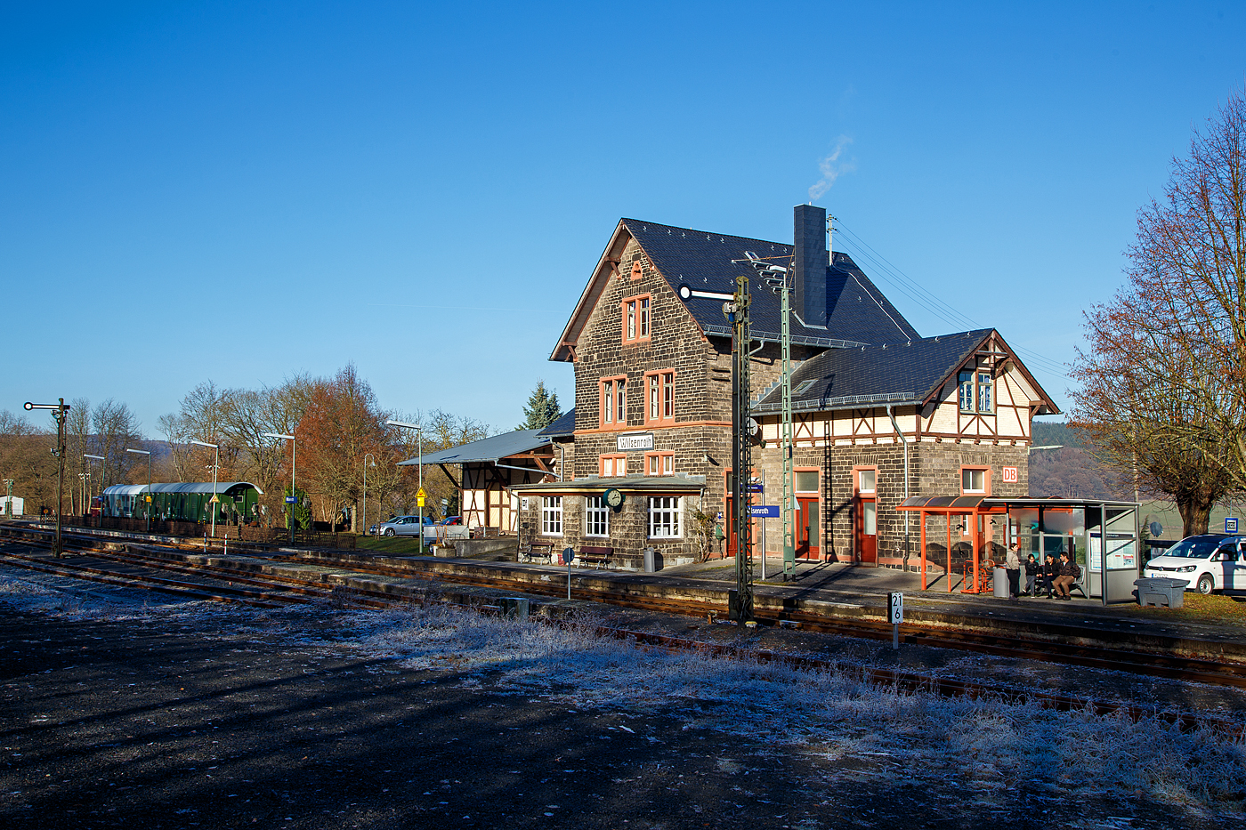 Der historische TEE-Rheingold steht am 30.08.2009 im Bahnhof Biedenkopf zur Abfahrt nach Bad Laasphe zum Bahnhofsfest bereit. Da die Strecke keine Elektrisierung hat, kam ungewöhnliche Lokbespannung zum Einsatz: Vorne 218 105-5 in verkehrsrot, 3 Rheingoldwagen und 103 235-8 und hinten 218 387-9 in altrot. Der Zug konnte mit normalen Nahverkehrsticket befahren werden