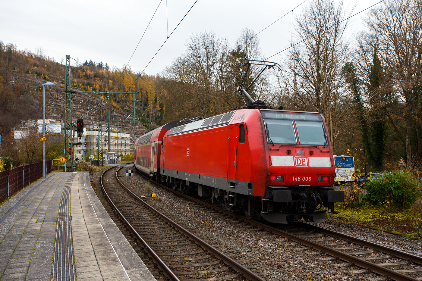 Bahnhof Radebeul Ost am 07.12.2022: Links schieb die 146 010 nun die S1 nach Meißen-Triebischtal der S-Bahn Dresden weiter in Richtung Meißen. Während rechts ein Wagenzug der SDG - Sächsische Dampfeisenbahngesellschaft mbH als Lößnitzgrundbahn steht, dieser fährt planmäßig ca. 30 Minuten später in Richtung Moritzburg.