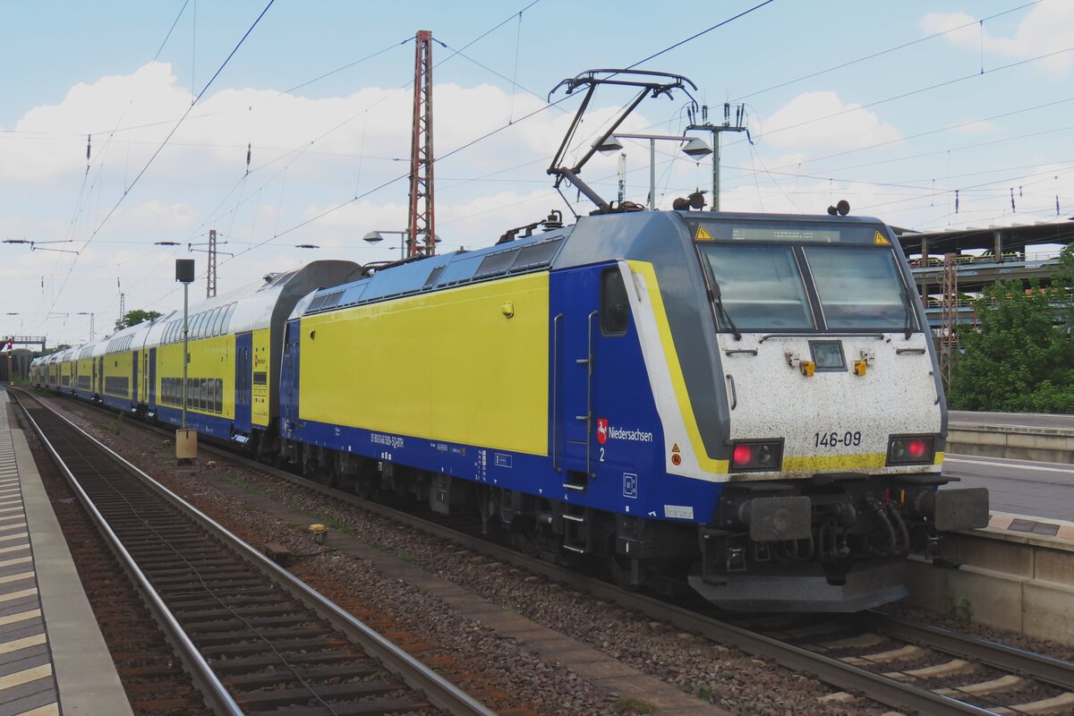 ME 146-09 verlasst am 2 Mai 2024 Celle mit ein RE nach Hamburg. Ab Dezember 2027 gibt es keine Metronom-Züge mehr, so wer diese Züge fotografieren möchte, darf sich ein klein Bisschen beeilen.