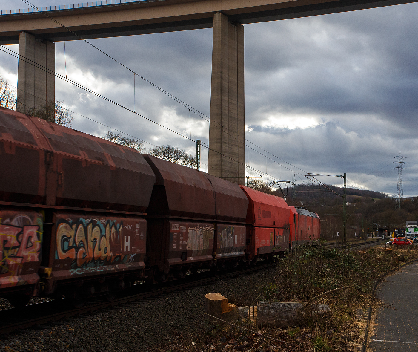 Die 185 249-0 (91 80 6185 249-0 D-DB) der DB Cargo AG fährt am 28 Februar 2026 mit einem Kohlezug durch Siegen-Eiserfeld in Richtung Köln.