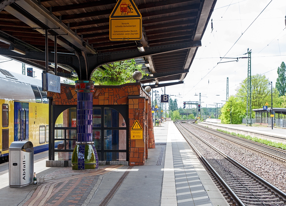 Zwei 189er mit AK-Kupplung in Doppeltraktion (DB 189 050-8 und eine Weitere) der DB Cargo AG fahren am 14.05.2020 mit einem leeren Erzzug durch den Hundertwasser-Bahnhof Uelzen in Richtung Hamburg.