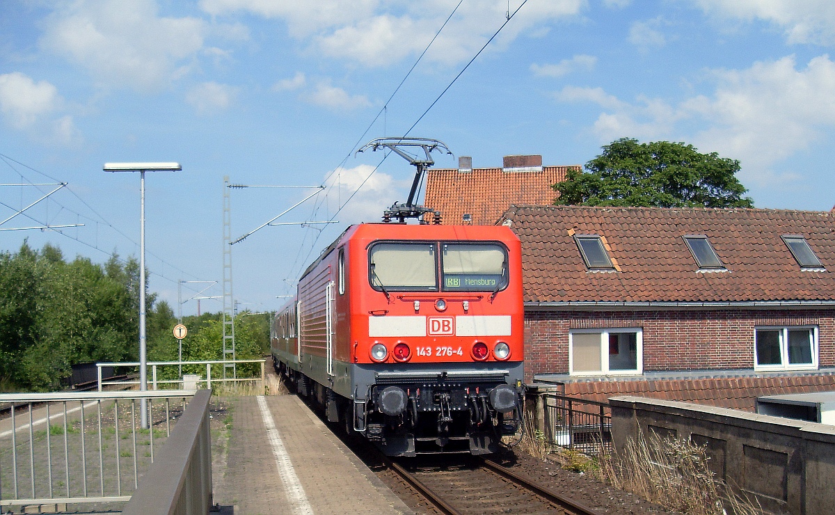DB 143 276-4 als Schublok einer RB nach Flensburg aufgenommen bei der Ausfahrt Hp Flensburg-Weiche am 01.07.2008