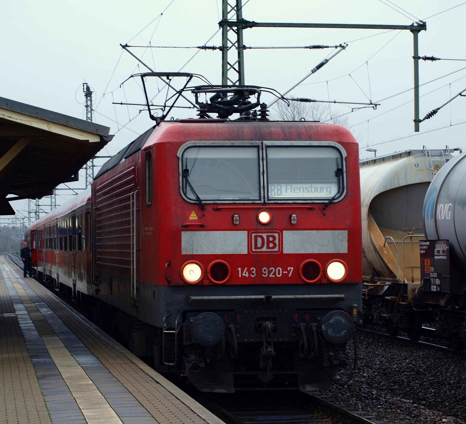 DB 143 920-7 damals im Bw Stuttgart beheimatet zu Gast im Norden. Schleswig 04.12.2009 (üVinG 1600)
