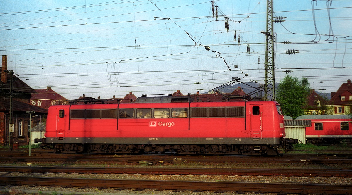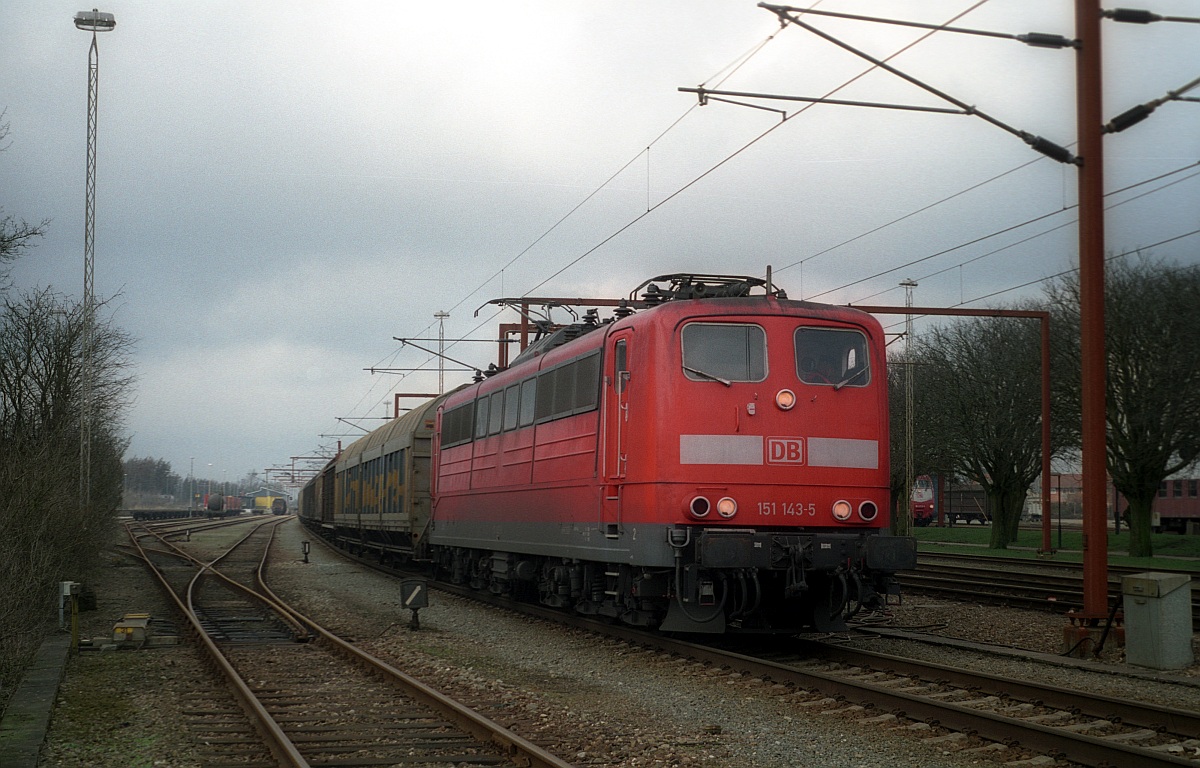 DB 151 019-7 verlässt hier mit einem Güterzug Padborg in Dänemark Richtung Deutschland. 06.05.2001(DigiScan 008)