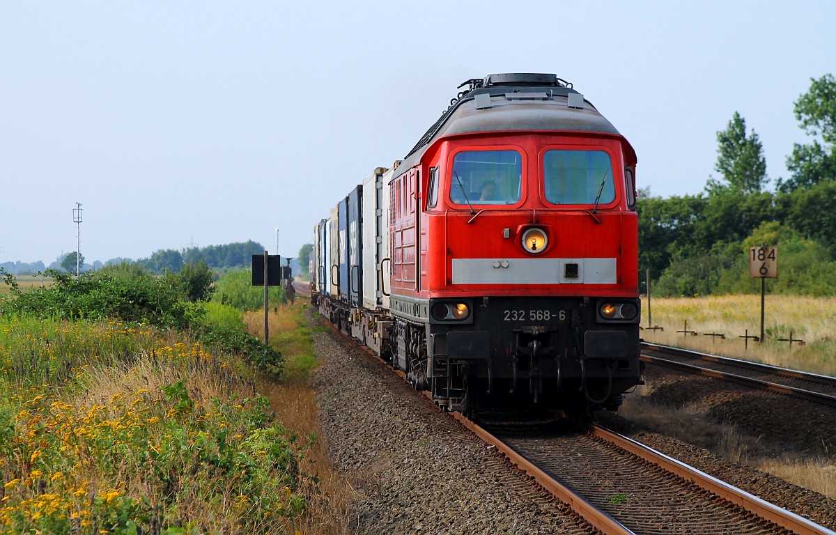 Hier mal der etwas andere Blick auf den EZ/GD 47420 der in Schleswig wegen seiner Länge auf den Gegenzug aus Husum in der Abendsonne warten musste. 28.07.2014