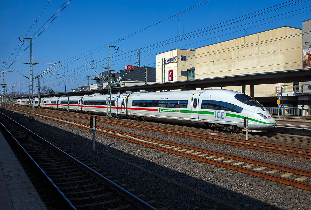 Der ICE 3 "Neunkirchen/Saar" Tz 326 (403 526-7 / 403026-8) hat, als ICE 100 (Basel SBB - Frankfurt(M) Flughafen Fernbf. – Köln Hbf - Dortmund Hbf), am 20 Februar 2017 pünktlich um 22:56 Uhr den Bahnhof Siegburg/Bonn erreicht.