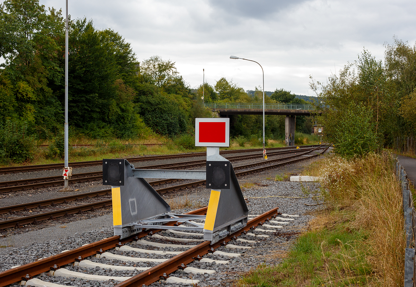 RAWIE feuerverzinkter Bremsprellbock Typ 10 EB Ausf. 10 EB SP auf dem KSW Rangierbahnhof Herdorf (Freien Grunder Eisenbahn KSW NE447 / DB-Nr. 9275), hier am 10 September 2024.