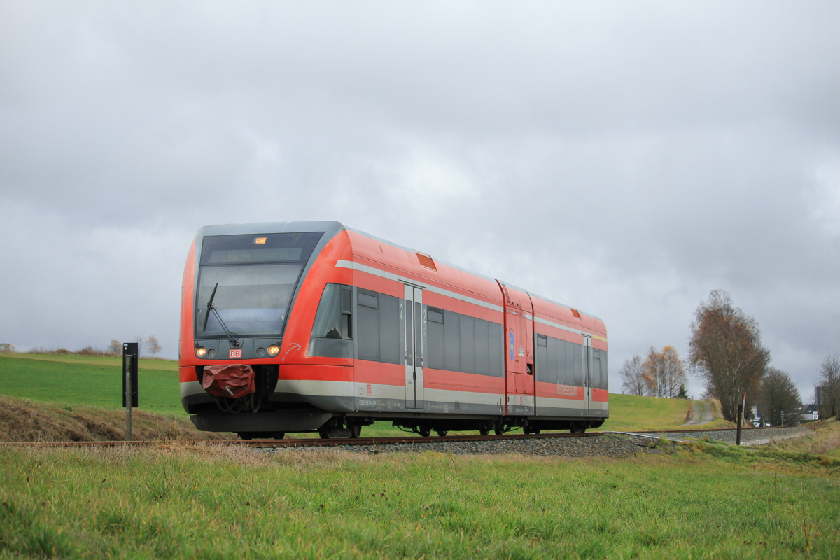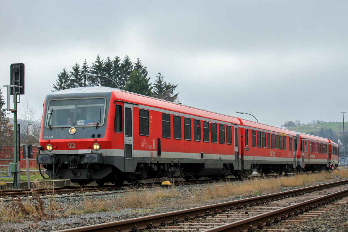 Der Desiro 642 061 / 642 561 (95 80 0642 061-5 D-DB / 95 80 0642 561-4 D-DB) erreicht am 24.03.2018, als RB 94 (Erndtebrück – Bad Laasphe – Marburg) den Bf Biedenkopf.