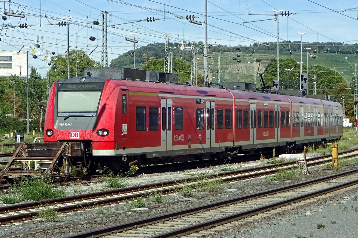 . 425 130-2 ist am 20.12.2014 zwischen Bous und Ensdorf unterwegs und hätte es nicht angefangen zu regnen, hätte es sogar eine Spiegelung des Quietschis in der Pfütze gegeben. (Jeanny)