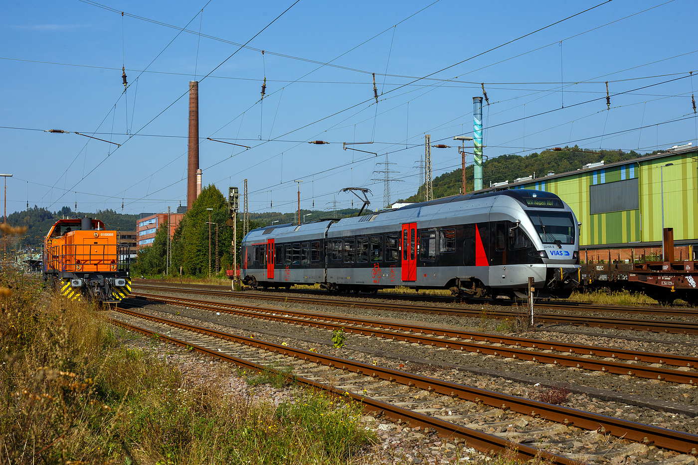 Der VIAS ET 22-11-01 (94 80 0426 100-4 D-VIASR / 94 80 0826 100-0 D-VIASR) ein 2-teiliger Stadler Flirt, ex DB ET, ex Abellio Rail NRW ET 22 2101 bzw. ex ET 22 001, erreicht am 12 Februar 2024, als RB 91 "Ruhr-Sieg-Bahn" (Hagen – Siegen), den Hauptbahnhof Siegen.