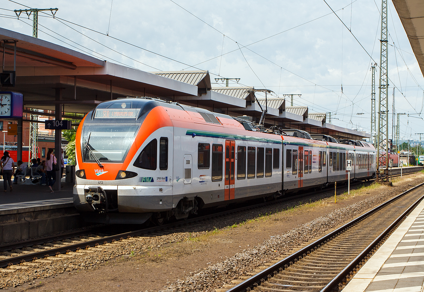 Der vierteilige Stadler FLRIT 401 der VIAS (für die RheingauLinie - SE10) ist am 12.04.2015 im Bahnhof Neuwied abgestellt.