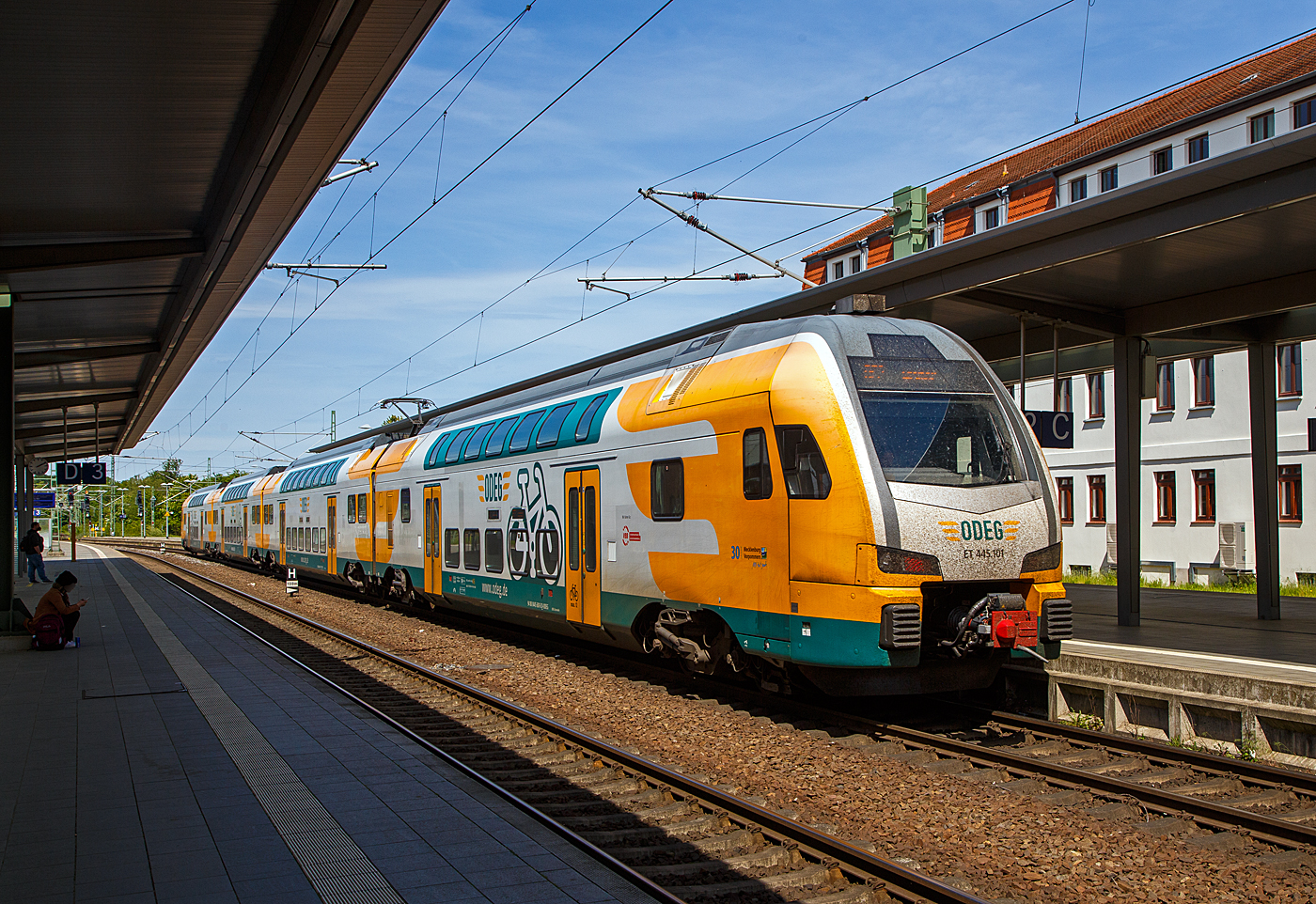Der ODEG ET 445.111 wartet in Schwerin auf die Abfahrt Richtung Berlin.
