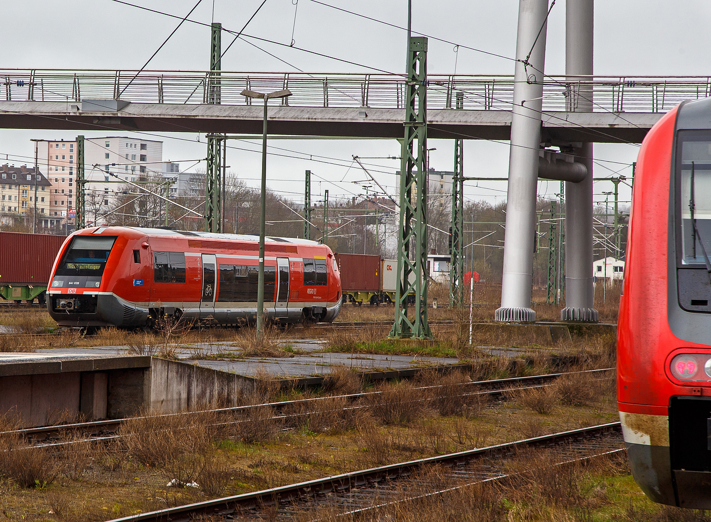 Ein auf den ersten Blick eher banales Bild, doch der DB 641 012, der bei Neunkirch auf der eingeleisigen Strecken durchs Klettgau bei Kilometer 352.4 auf dem Weg nach Erzingen (Baden) unterwegs ist, gewinnt erst beim Betrachten eines Vergleichsbild aus neuerer Zeit seinen Reiz.