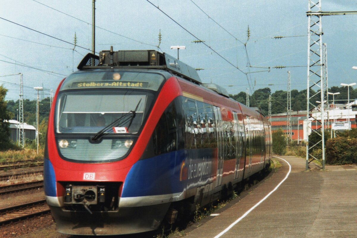 Scanbild von DB Regio 643 028 mit 'Euregio'-Aufkleber beim Halt in Herzogenrath am 10 September 1999.